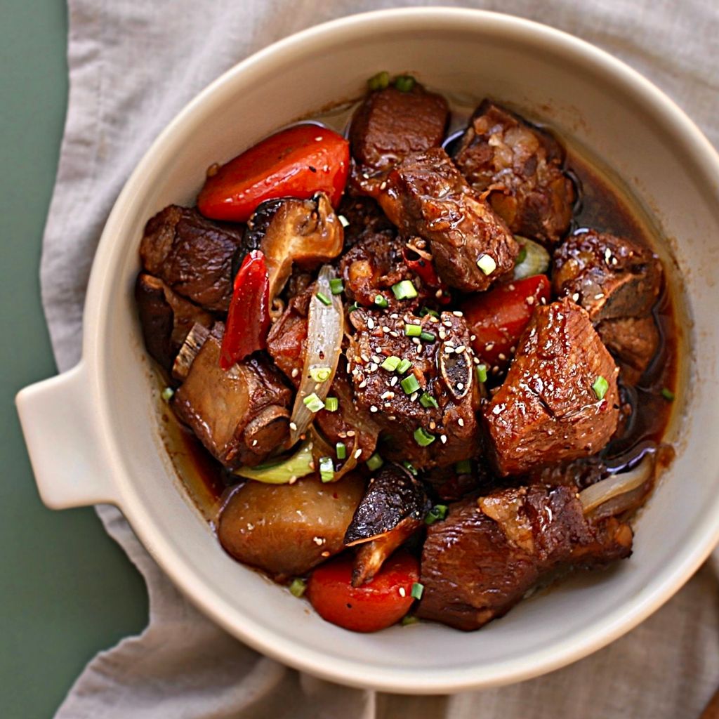 일주일의 시작 잘 지내고 있나요~ 저는 평소처럼 빨래 돌리고 커피 한잔 넣고 레시피 올리려고 앉았습니다 지난 주말에는 정육점에서 할인 문자를 받고 그 안에서 돼지갈비찜을 만들어 먹을까 해서 사왔는데 간장양념으로 졸이는 동안 집에 맛있는 냄새도 풍기고 편하게 두끼 정도는 메인 반찬을 담당하기 때문에 야채도 여러가지가 있어서 간장돼지갈비찜을 만들면서 같이 넣어서 맛있게 먹었습니다 피를 빼고 삶아서 끓이는데 정성이 들어가지만 어렵지 않으니 오랜만에 같이 만들어 봅시다~